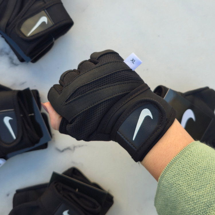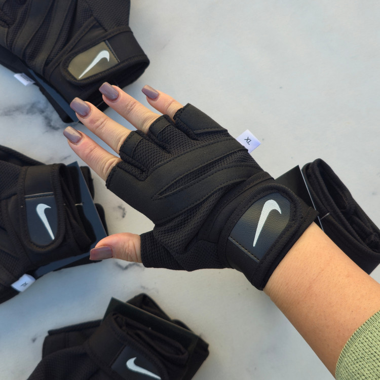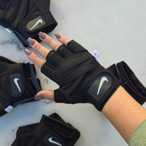 دستکش ورزشی کفه جیر نیم انگشتی زنانه تک رنگ مشکی نایک